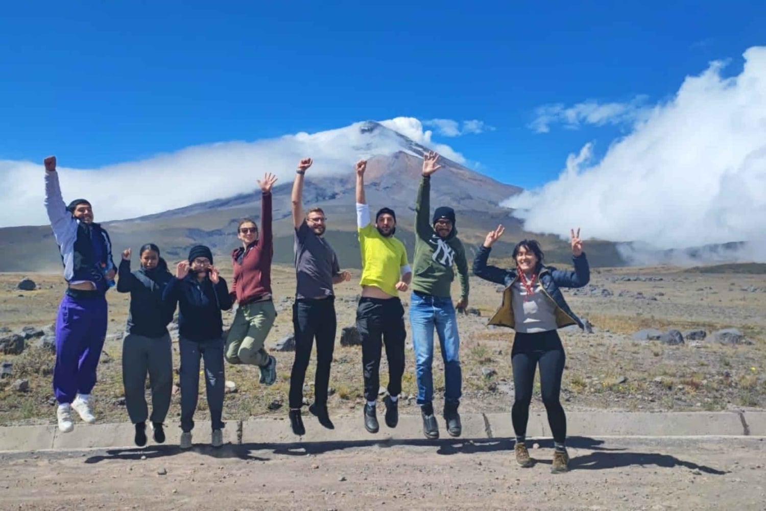 1.- المغادرة من بلازا فوش الساعة 7:15 صباحًا (رينا فيكتوريا وماريسكال فوش) / المغادرة من بلازا سان بلاس الساعة 7:30 صباحًا (فرانسيسكو دي كالداس وشارع بيشينشا). 2.- التوقف بالقرب من مدخل الحديقة الوطنية حتى يتمكن الركاب من شراء وجبة الإفطار ومستلزمات الطريق. 3.- مدخل منتزه كوتوباكسي الوطني 3200 م.س.ل. (10498.69 قدم). 4.- شرح الجزء السفلي من النباتات والحيوانات المستوطنة في الحديقة الوطنية. 5.- حسب صور الطقس في الجزء السفلي من المنتزه على ارتفاع 3600 متر فوق سطح البحر. (11811.02 قدم). 6.- الوصول إلى ارتفاع 4500 متر (14765 قدمًا). 7.- شرح حول الرحلة إلى Refugio José Rivas 4.864 m.a.s.l. (15960 قدمًا). 8.- العودة إلى موقف السيارات. 9.- شرح للأشخاص الذين سيتخذون خيار النزول بالدراجة الهوائية 45 م تقريباً. 10.- صور لبحيرة ليمبيوبونجو حتى نقوم بتحميل الدراجات. 11.- المغادرة من الحديقة الوطنية إلى نفس المطعم صباحاً لتناول وجبة الغداء. 12.- العودة إلى كيتو.Includes