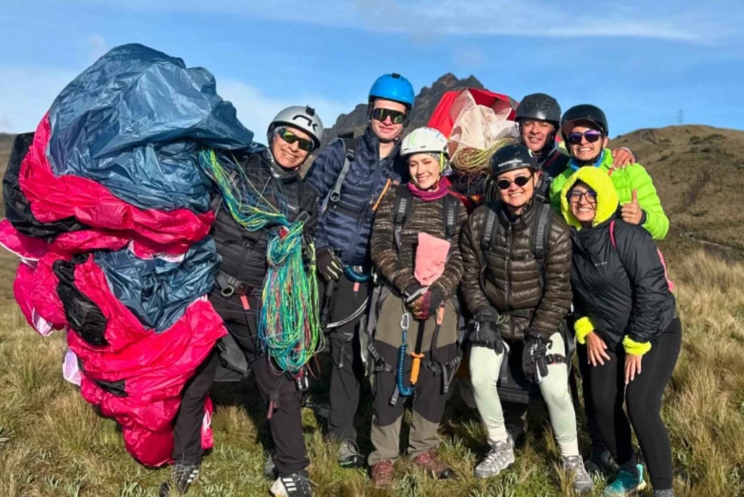 استمتع بمتعة الطيران الآمن مع مناظر طبيعية خلابة. اكتشف الحرية من السماء مع رحلة طيران بالمظلات الثنائية في الإكوادور. اشعر بمتعة الطيران الثنائي مع طيارين خبراء. استمتع برحلة آمنة ومبهجة فوق مناظر طبيعية خلابة كالمنحدرات الساحلية والوديان الخضراء، مصممة خصيصًا لجميع مستويات الخبرة. حلّق مع طيارين ومدربين معتمدين وشغوفين، ملتزمين بأعلى معايير السلامة. حلّق فوق أجمل مناظر الإكوادور الطبيعية، واستمتع بتجربة طيران آمنة وسهلة.Includes