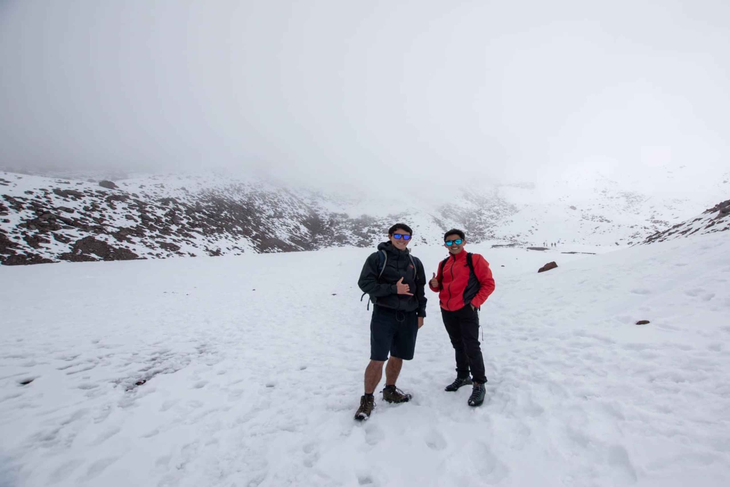 - ارتدِ ملابس دافئة ومريحة مناسبة للمشي لمسافات طويلة. من المهم أن تتأقلم مع الارتفاع قبل بدء الرحلة. احمل معك الماء والوجبات الخفيفة لتحافظ على رطوبة جسمك ونشاطك. لا تنسَ إحضار الكاميرا لالتقاط المناظر الطبيعية الخلابة. كن مستعدًا لتغيير كبير في الارتفاع أثناء الرحلة.