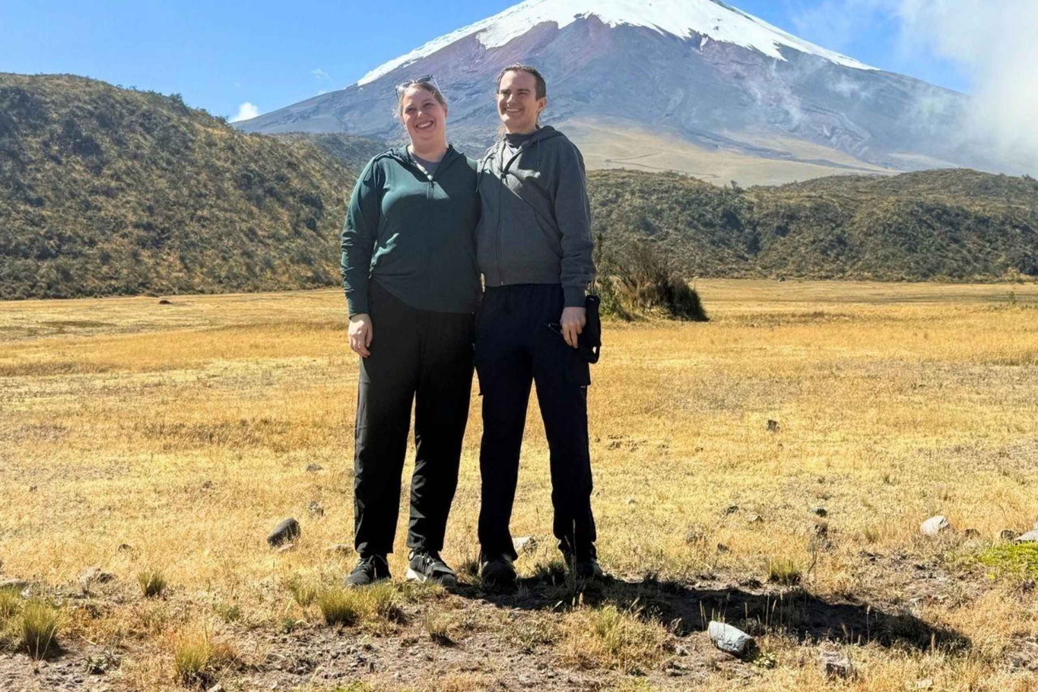 ابدأ مغامرة مذهلة ليوم واحد إلى Cotopaxi من كيتو، وسيقوم أحد مرشدينا الودودين بنقلك من فندقك أو عبر Airbnb في المدينة. من هنا يبدأ يومنا من المغامرة والاكتشاف بينما نسافر على طول 'شارع البراكين' الشهير على طريق باناميريكان السريع، في طريقنا إلى حديقة كوتوباكسي الوطنية. الزيارة الأولى في اليوم هي إلى ميرادور دي كيتو، المكان المثالي للاستمتاع بالجمال البانورامي لمدينة كيتو. ثم سنواصل طريقنا إلى قلب حديقة كوتوباكسي، حيث يرحب بنا المستنقع بكمية كبيرة من النباتات وبحيرة ليمبيوبونغو الجميلة، وهي مرآة طبيعية حيث ينعكس بركان كوتوباكسي المهيب. عند دخول المتنزه، ستزور مركز التفسير 'لا ماريسكال' على ارتفاع 11811 قدمًا، حيث يظهر ثراء النباتات والحيوانات الإكوادورية في كل مكان. الوصول إلى موقف سيارات بركان كوتوباكسي، ومن هنا سنبدأ جولة بارامو الأنديز وتاريخها البركاني. نصل إلى موقف سيارات بركان كوتوباكسي، ومن هنا سنبدأ رحلة إلى ملجأ خوسيه ريفاس. سوف يتركك المنظر البانورامي من هذا الارتفاع لاهثًا، وإذا كنا محظوظين فسنرى بعض الجبال الرمزية المغطاة بالثلوج مثل كورازون وروميناهوي وتشيمبورازو المهيبة. يمكنك في الملجأ الاستمتاع بفنجان من الشاي أو الشوكولاتة الساخنة. وفي طريق العودة، استكشف بحيرة Limpiopungo Lagoon الواقعة عند سفح البركان. يوفر هذا المسار اتصالاً بالطبيعة والمناطق المحيطة المذهلة التي لم نعتد عليها. تنتهي الجولة بوجبة غداء نموذجية في مطعم محلي يطل على كوتوباكسي والعودة إلى كيتو.Includes