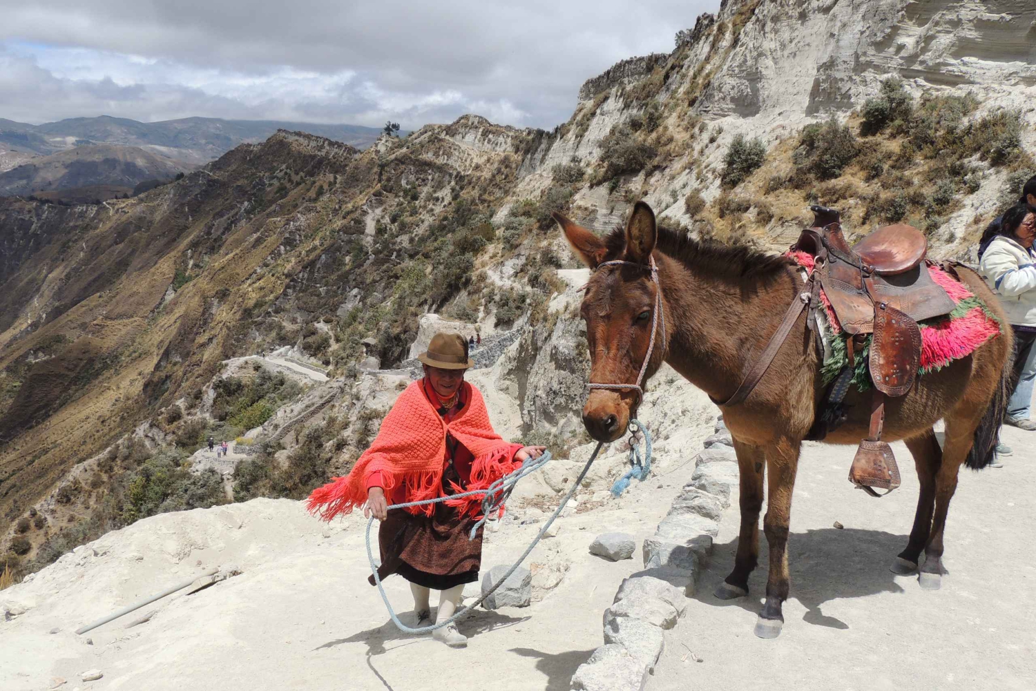 تبدأ هذه الرحلة الثقافية الخاصة المدهشة والمريحة في الساعة 8:00 صباحًا، من فندقك في كيتو، بالسيارة عبر 'شارع البراكين'، وبزيارة سوق ساكيسيلي المحلي الهندي (الخميس)! توفر الرحلة إلى بحيرة كويلوتوا إطلالات خلابة على جبال الأنديز، مروراً بالوادي القديم لنهر تواتشي، والعديد من المجتمعات الأصلية والأراضي الزراعية. قبل الغداء، في الموقع المعروف باسم 'هوايرا بونغو'، سنزور كوخًا محليًا أصليًا، حيث ستتاح لك الفرصة للتفاعل مع سكان الكوخ وربما تعلم بعض كلمات كيتشوا، وهي اللغة الأصلية لهذه المنطقة! بعد هذه التجربة الحياتية الخاصة، ومشاركة بعض الدقائق مع السكان المحليين، ستتناول الغداء في مطعم محلي ساحر! ثم تتاح لنا الفرصة لزيارة سوق زومباهوا المحلي والفريد (السبت)، حيث نتمكن من رؤية نظام التجارة القديم لتبادل السلع بدون أي عملة، والذي يُسمى trueque! تتضمن الجولة نزولاً شديد الانحدار إلى فوهة بركان كويلوتوا، حيث توجد بحيرة زمردية متلألئة داخل البركان المنقرض، الذي يقع على ارتفاع 3.600 متر فوق مستوى سطح البحر (11.811 قدمًا). تستغرق رحلة العودة إلى القمة، حيث توجد منطقة وقوف السيارات، حوالي ساعة واحدة، أو هناك خيار استئجار بغل أو حصان، مع مقعد مريح، لطريق العودة!! سيكون من المفيد جدًا أن تكون في جولة خاصة، نظرًا للارتفاع الشاهق، لذلك سوف يساعدك مرشدك السياحي في كل لحظة، وخاصة أنك ستأخذ وقتك في كل نشاط لجعل هذه الرحلة اليومية أفضل تجربة في العمر! ستعود إلى كيتو في حوالي الساعة 5:00 مساءً، بعد الاستمتاع بهذه الجولة الحصرية التي لا تُنسى!Includes
