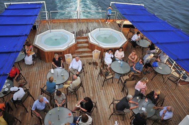 The ship has a central air conditioning system that covers all the indoor areas, and satellite communication.