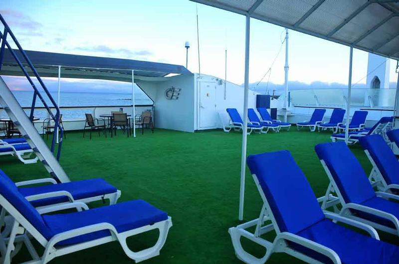 The staff is Ecuadorian bilingual, and front desk officers are always available to assist passengers in solving any issues or satisfy any special needs. On the three, four, and seven night cruises available, certified naturalist guides lead the activities on the islands, and onboard social activities are offered, such as the King Neptune's party and the pirates' party.