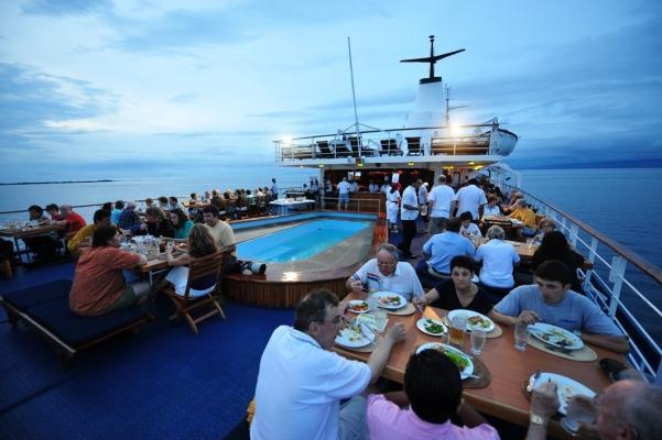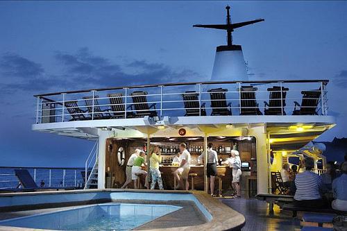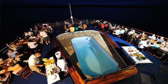 The facilities have been implemented to create a homely feel to the cruise liner, including a 24 hour coffee bar, swimming pool, piano lounge, cocktail bars, and a calling facility to stay in contact with friends and family onshore. Social areas can be found on the sundecks or in the dining room to indulge in fantastic cuisine. Before excursions the auditorium facility is used to educate tourists on what to expect and how to respect the area for its natural beauty; an environmentally aware approach which has enhanced the reputation of the Galapagos Legend.