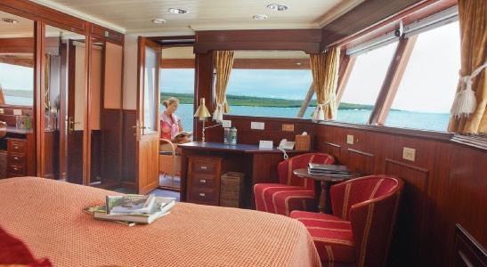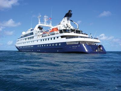 More modest than other National Geographic cruise liners, the Islander can accommodate only 48 guests in total. Due to its smaller size (164-foot), however, the ship can access remote locations and alluring coves off the islands of the Galapagos. At a moment's notice you could find yourself chasing a pod of dolphins, snorkeling amongst a shoal of fish or kayaking along the balmy Pacific Ocean.