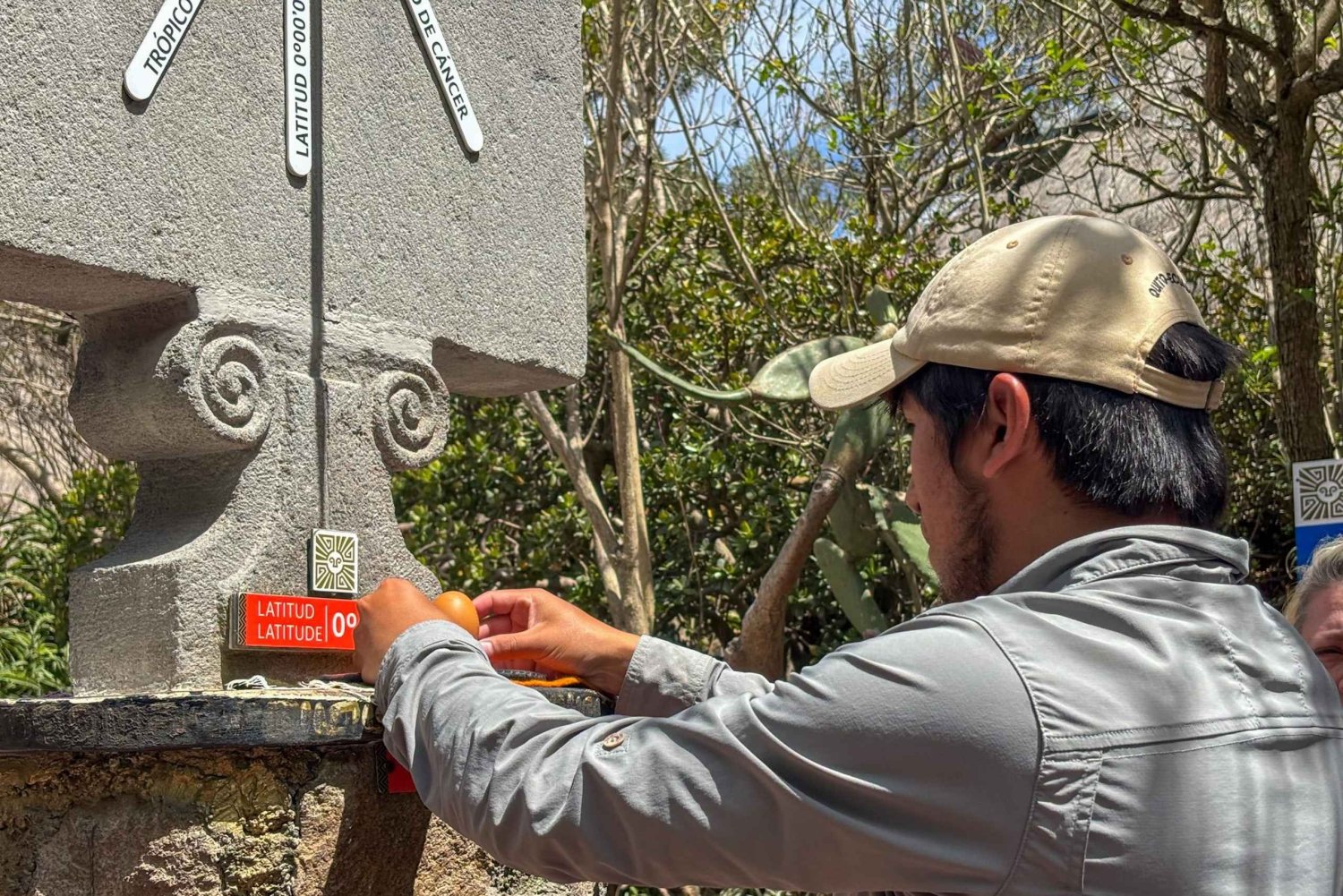 Stå på to halvkugler på én gang! Oplev Ecuadors ækvator Ecuador er et af de få lande, der er opkaldt efter ækvator – og denne halvdagstur fra Quito giver dig mulighed for at udforske landets mest ikoniske ækvatorielle vartegn. Denne tur, der kombinerer videnskab, kultur og natur, er både lærerig og uforglemmelig. ✨ Perfekt til: nysgerrige rejsende, familier, par og alle, der gerne vil kunne sige: 'Jeg har stået på ækvator!' ✨Stop 1 - Besøg i en af verdens eneste beboede vulkankratere Pululahua Geobotanical Reserve: caminaremos hacia el borde del crater Pululahua blev dannet for over 2.500 år siden og er en frodig, tågefyldt dal, hvis navn betyder 'vandsky' på kichwa. Det er et paradis for biodiversitet, hjemsted for over 2.000 plantearter og snesevis af fugle- og pattedyrarter. Den frugtbare jord og den mystiske energi gør det til et yndet sted blandt naturelskere og spirituelle søgende. ✨ Stop 2 – Intiñan Solar Museum Experience: Vi tager til den ægte ækvatorlinje, verificeret af GPS, hvor videnskab bliver til eventyr. Prøv at balancere et æg på en søm, se hvordan vandet drejer forskelligt på hver halvkugle, og udfordr din balance ved at gå langs nul-breddegraden. Dette interaktive museum viser også traditionelle indfødte hjem og fascinerende udstillinger om Amazonas-stammer som Shuar, der giver et indblik i deres forfædres ritualer og livsstil. Det er en legende, praktisk oplevelse, der blander fysik, kultur og nysgerrighed. ✨ 3 Stop - Midten af verdens monument: Som vores sidste højdepunkt besøger vi det ikoniske Mitad del Mundo-monument, der er bygget, hvor de tidlige opdagelsesrejsende engang troede, at ækvator krydsede. Tag en pose med en fod i hver halvkugle og føl spændingen ved at stå i midten af planeten. Denne 30 meter høje struktur ærer den franske geodesiske mission fra det 18. århundrede og huser et museum, der fejrer Ecuadors rige kulturarv. Klatr op til toppen for at nyde den fantastiske panoramaudsigt over dalen og de omkringliggende Andesbjerge – en perfekt afslutning på en dag fuld af oplevelser.Includes