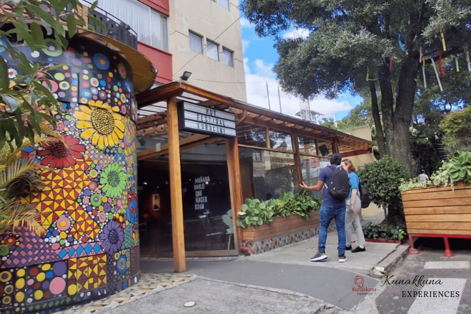 Empieza tu tour a pie en La Mariscal, un barrio conocido por su ambiente vibrante y su estilo artístico. Pasea por las calles y admira murales coloridos que cuentan historias urbanas y reflejan la identidad local.