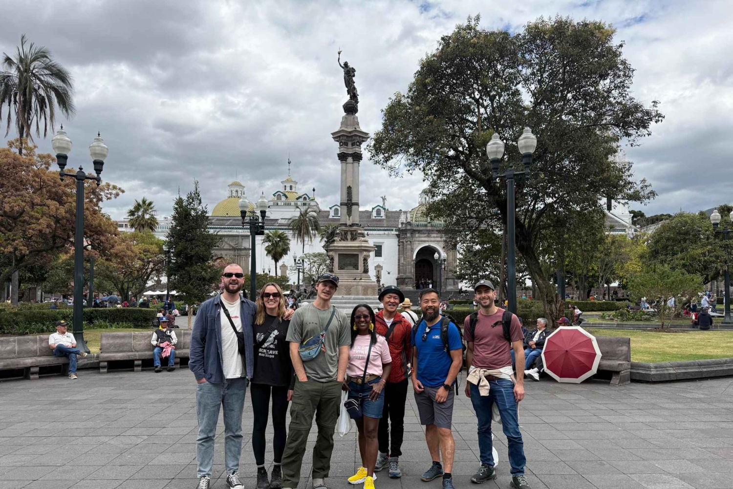 Descubre lo mejor de Quito en un solo día con un tour privado súper flexible. Empieza con una recogida cómoda en tu alojamiento en Quito. Tu guía certificado adaptará el itinerario a tus intereses, asegurando una experiencia inolvidable. Visita la impresionante Basílica del Voto Nacional, la iglesia gótica más alta de Ecuador, y sube a sus torres para disfrutar de unas vistas impresionantes de la ciudad (entrada no incluida). Explora la histórica Plaza Benalcázar y la Plaza Grande, el corazón político y cultural de Quito. Maravíllate con el interior adornado con oro de la Iglesia de la Compañía de Jesús (entrada no incluida) y pasea por la animada Plaza de San Francisco. Disfruta de una degustación del mundialmente famoso chocolate ecuatoriano en Yumbos Chocolate, con oportunidades para tomar fotos desde un hermoso balcón. Sube al teleférico para disfrutar de vistas panorámicas de la ciudad y las montañas (opcional) y párate en el ecuador en Mitad del Mundo, donde aprenderás sobre la geografía única de Ecuador. El tour también incluye una visita al Museo Intiñan, donde las exposiciones interactivas revelan las conexiones indígenas con el sol y el ecuador. Disfruta de dulces tradicionales y agua embotellada en el camino. Al final del tour, te dejarán en el punto de encuentro original.Includes