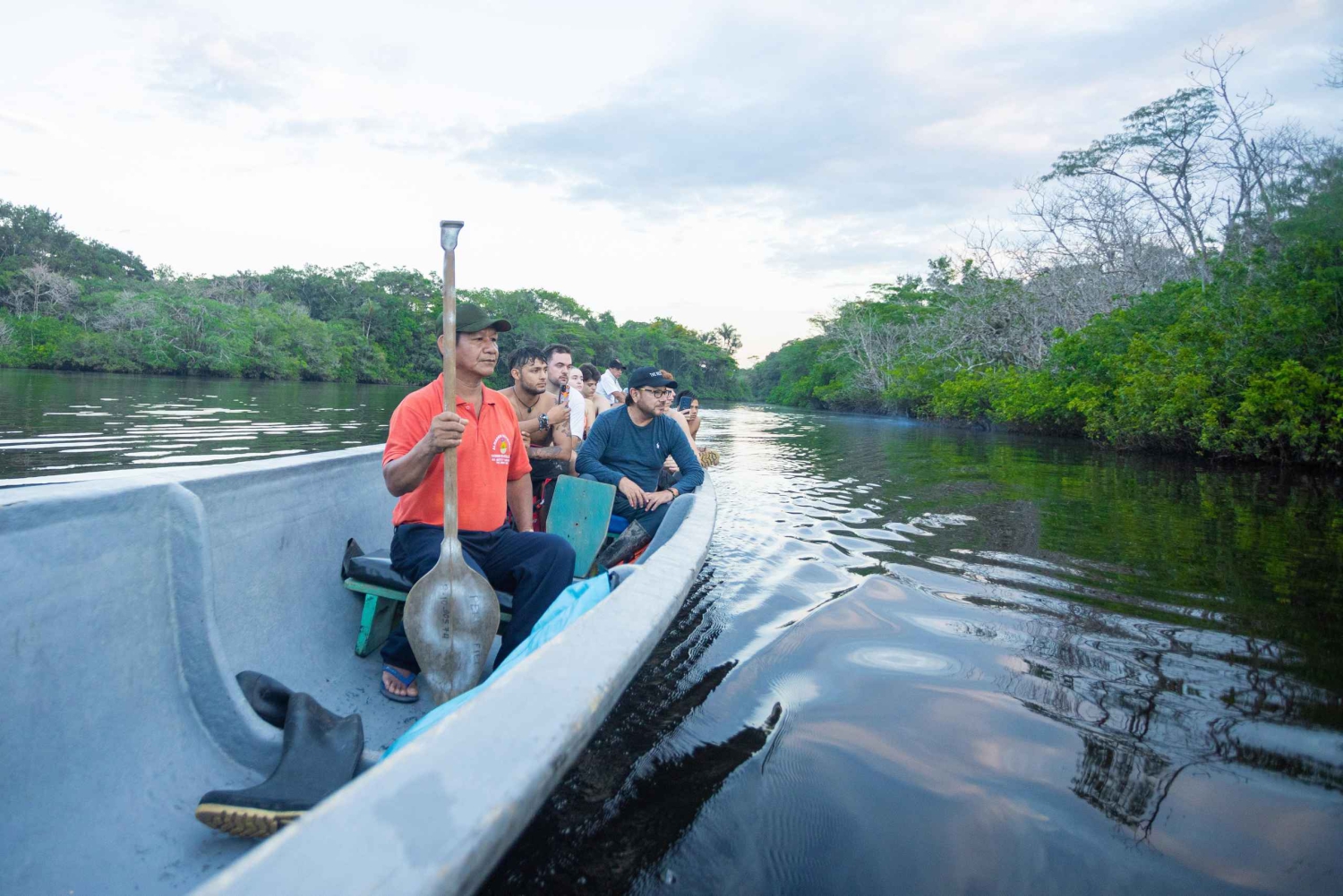 Day 1: Arrival, Canoeing, Jungle & Night Walks Meet at Cuyabeno River (8:00-9:00 am). After registration and a briefing, enjoy a two-hour canoe trip to the lodge, arriving around 1:30 pm for lunch and relaxation. At 4:30 pm, explore the flooded jungle by motor canoe, spotting sloths, pink dolphins, and other wildlife. Witness the sunset at Laguna Grande, swim, and return to camp for dinner, a welcome cocktail, and a night excursion to see caimans, snakes, and nocturnal birds. Day 2: Ecological Rowing Start with a 7:00 am breakfast, then head out at 8:00 am in paddle canoes to the Caimancocha trail. Enjoy a 3-hour hike in the primary forest, learning about the Amazon's ecology from your guide. Return to the lodge by 1:30 pm for lunch. At 4:30 pm, relax on a catamaran tour, observe animals like pink dolphins and monkeys, swim, and watch the sunset. After a 7:30 pm dinner, take a night walk to see arachnids, amphibians, and hopefully nocturnal reptiles. Day 3: Visit to Puerto Bolivar Siona Community Meet at 6:00 am at the Caiman Meeting Point, head to the Great Cayman Bird Tower for bird watching and sunrise with coffee. After an 8:00 am breakfast, depart at 9:00 am to the Siona Community of Puerto Bolivar (1.5 hours). A native woman will guide you to the yucca plantation and show how to prepare casabe. Meet one of the last Siona shamans for a cleansing ritual. Tour the area for snakes and other animals, visit the Ceibo tree, and return to the lodge for lunch. Swim in Laguna Grande, relax at the lodge, and at 5:00 pm, enjoy a final tour of Laguna Grande to see dolphins, swim, and watch the sunset. Special dinner at 7:30 pm with your guide, sharing jungle experiences and a farewell cocktail. Day 4: Ecological Day in Lagoons and Jungle After an 8:00 am breakfast, receive equipment (hammocks, water ponchos, boots) for a full-day adventure. Paddle to La Laguna Cananbueno, observing a variety of animals like monkeys, birds, and sloths. Take a 3-hour walk in the primary forest, learning about the Amazon's ecology. Enjoy a box lunch in the jungle, rest in hammocks, then return for a final tour in Laguna Grande to see dolphins and other wildlife. Swim, watch the sunset, and return to the lodge for a special 7:30 pm dinner and farewell cocktail. Day 5: Bird Watching & Return At 5:30 am, head to the Great Cayman Bird Tower for bird watching and a beautiful sunrise with coffee. After an 8:00 am breakfast at the lodge, prepare for the return journey at 9:30 am to the Cuyabeno Bridge, where you will have lunch.Includes