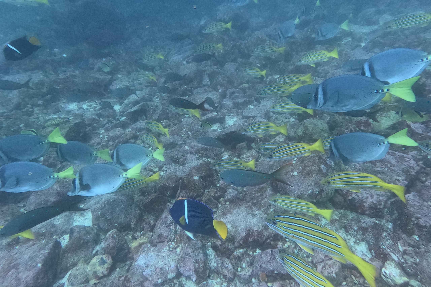 Welcome to an unforgettable day tour of Pinzón Island, where adventure and nature enthusiasts alike will find paradise. Bookings made through third-party agencies are not eligible for the CIG Rewards Program or CIG welcome souvenirs. For more information, please visit www.cigtours.com.Embark on an 8-hour day tour of Pinzón Island, departing from the picturesque port town of Puerto Ayora. Exclusive Dinner is included. We are confident to say CIG will arrange the best dinner to you. Tell us your preferred time for dinner, and we will arrange an exclusive dining experience for you! This adventure-packed tour includes two snorkeling sessions in crystal-clear waters, where you'll encounter a vibrant array of marine life. Relax on the island's pristine beaches, soaking in the sun and the serene surroundings. Witness the fascinating Blue-footed Booby in its natural habitat, a true highlight of the Galápagos. Enjoy the unique opportunity to fish from the comfort of the yacht, adding an extra layer of excitement to your day. Throughout the tour, you'll be treated to delicious meals, including breakfast, lunch, and a special exclusive seafood dinner, making this an unforgettable experience. Schedule from 7:00 am to 2:30 pm At 7:00 am, Pick up at your hotel At 7:10 am, Enjoy your breakfast At 7:40 am, We will start going to the Pinzon island At 9:10 am, We will start our first Snorkeling tour At 10:30 am Done the first Snorkeling tour and it's time to enjoy the free time. At 11:00 am Back to the Yacht and it's time to enjoy the lunch. 45 minutes yacht to the next Snorkeling destination At 11:45 am, Enjoy your second Snorkeling At 1:00 pm, Go back to the Yacht and be ready to view the Blue feet birds on the cliff, only in the Galapagos. At 1:20 pm You can try fishing and sightseeing around Santa Cruz Island. At 3:00 pm Back to the port of Puerto Ayora, If you request, CIG staff could take you a town tour at the Puerto Ayora at the afternoon. Tell us your prefer time for dinner, we will arrange the exclusive dinner for you! Embark on an 8-hour day tour of Pinzón Island, departing from the picturesque port town of Puerto Ayora. Exclusive Dinner is included. We are confident to say CIG will arrange the best dinner to you. Tell us your preferred time for dinner, and we will arrange an exclusive dining experience for you!Includes
