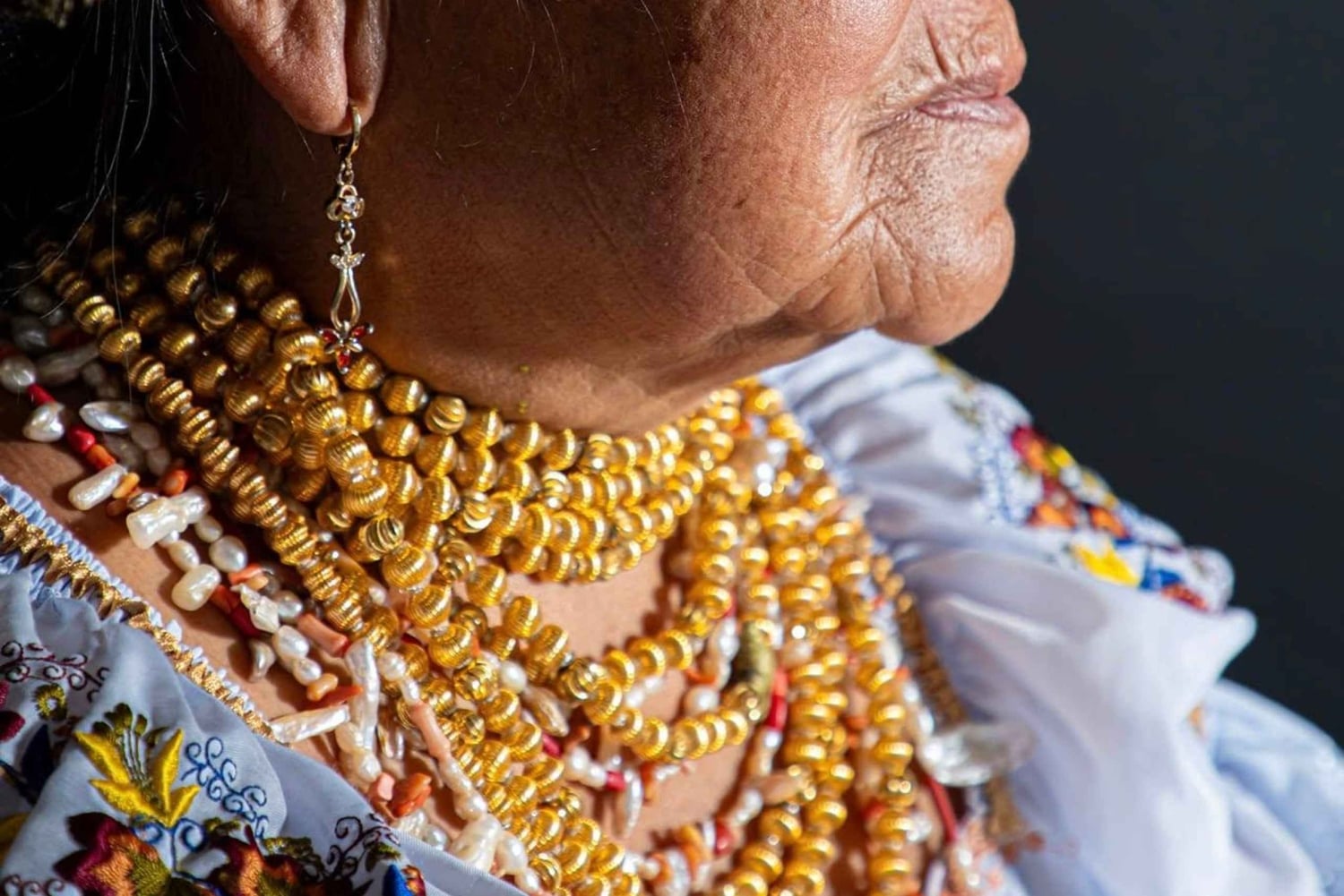 Discover the magic of Otavalo, one of the largest craft markets in South America, surrounded by incredible natural landscapes. The tour includes a boat ride on the enigmatic San Pablo Lake and a hike to Peguche Waterfall, a ceremonial site for the indigenous people of the area. The perfect place for a day tour just 2.5 hours from Quito. The Otavalo Market is known for its handcrafted products, made by local artisans and master craftsmen. You can find everything from intricate ceramics to musical instruments made from wood from the nearby cloud forest and various textiles and clothing. Peguche Waterfall is a stunning 18-meter-high waterfall and itβs super-close to Otavalo and the famous markets. It's a real fun (but easy!) adventure to get there and requires some gentle walking along the river that the waterfall flows into. Lake San Pablo is the largest natural lake in Ecuador. It has an area of 583 hectares and a maximum depth of 35.2 m; its water volume is estimated at 140,106 m3.Includes