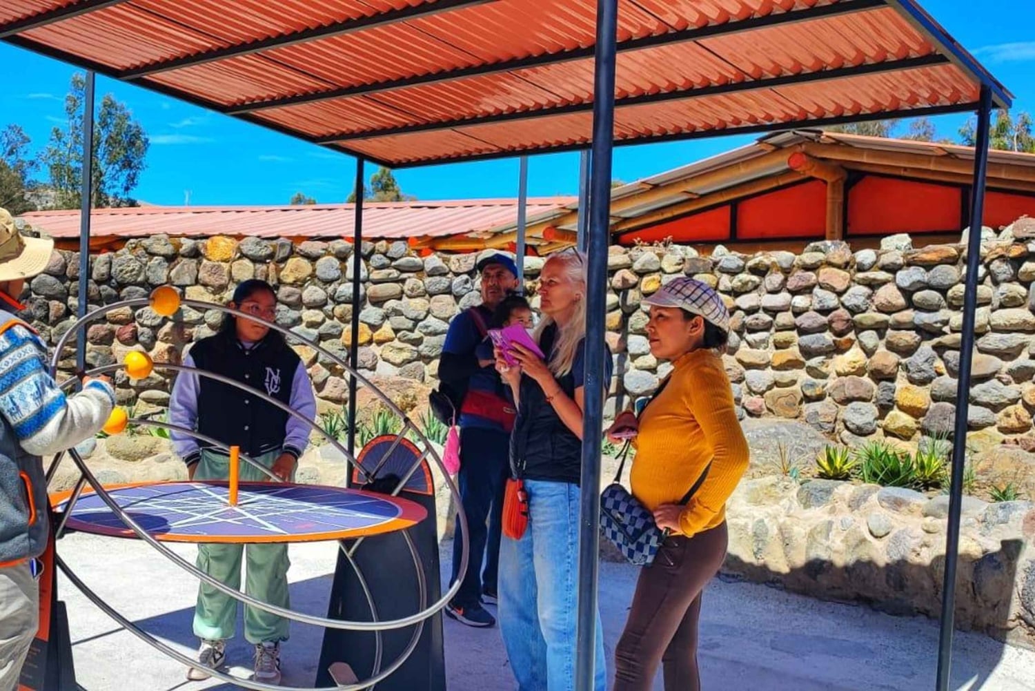 De Quito à Otavalo, il y a 2 heures de bus, mais dans notre visite en bus, nous visitons 6 attractions différentes entre Quito et Otavalo en une journée. Nous empruntons la Panamericana Norte pour nous rendre au cadran solaire de Quitsato, situé dans le canton de Cayambe, qui doit son nom à la montagne enneigée présente à cet endroit. Ce site culturel construit pour mesurer les solstices et les équinoxes, à l'époque préhispanique, est également considéré comme 'l'autre moitié du monde', puisque l'équateur ou la ligne équinoxiale traverse cet endroit et la moitié du sommet de la montagne enneigée de Cayambe. Ses habitants vivent de l'élevage, de l'agriculture et d'un secteur consacré à la récolte des roses pour l'exportation. Pour connaître sa gastronomie, nous nous arrêterons pour prendre une tasse de café équatorien ou de chocolat avec des bizcochos, qui sont des sortes de petits pains faits au four avec une saveur incomparable et le meilleur de tous, nous entrerons pour voir son processus d'élaboration. Notre prochain lieu de visite est Otavalo. Il est situé dans la province d'Imbabura connue comme la province des lacs, quelques minutes pour atteindre notre destination principale, nous avons un point de vue vers la lagune de San Pablo et en arrière-plan la colline d'Imbabura, pour décorer le paysage. Nous arrivons ensuite au plus grand et au plus important marché d'artisanat indigène d'Amérique du Sud, qu'il est possible de visiter tous les jours de la semaine. Mais dans notre visite à la journée, nous coïncidons avec les jours de la plus grande foire où tous les artisans se rassemblent sur la Plaza de los Ponchos, ici nous avons 2 heures pour faire du shopping et ensuite nous nous dirigeons vers Cotacachi. Nous y trouverons un autre marché artisanal spécialisé dans les produits en cuir. Comme il s'agit d'un petit endroit, nous disposons de 45 minutes. Notre dernière étape est la lagune Cuicocha, située à 3068 m d'altitude dans un cratère volcanique actif, avec des îlots ou des dômes et l'observation de plantes. -Départ de la Plaza Foch à 7h15 (Reina Victoria et Mariscal Foch) -Départ de la place San Blas à 7h30 (Francisco de Caldas et Av. Pichincha). -Horloge solaire de Quitsato. -Usine de biscuits de Cayambe (petit déjeuner optionnel). -Visite du point de vue du lac San Pablo. -Place de Ponchos. -Déjeuner. -Visite de la lagune Cuicocha. -Visite de la ville de Cotacachi. -Retour à Quito.Includes