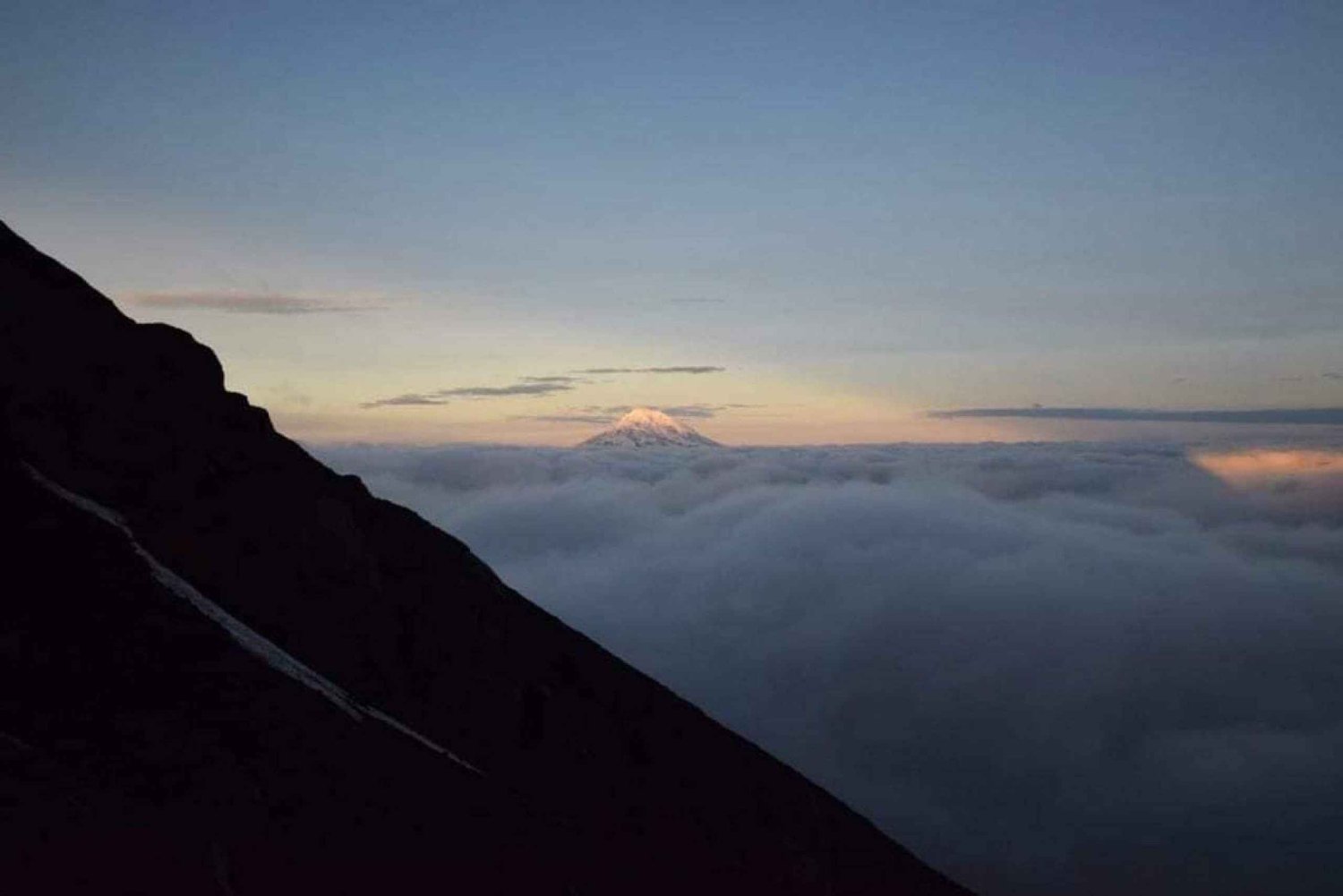 Conquérez le sommet de l'imposant volcan Tungurahua depuis Baños de Agua Santa. Montez jusqu'à 5 016 mètres à travers des forêts, des páramos et des terrains volcaniques en compagnie d'un guide professionnel.