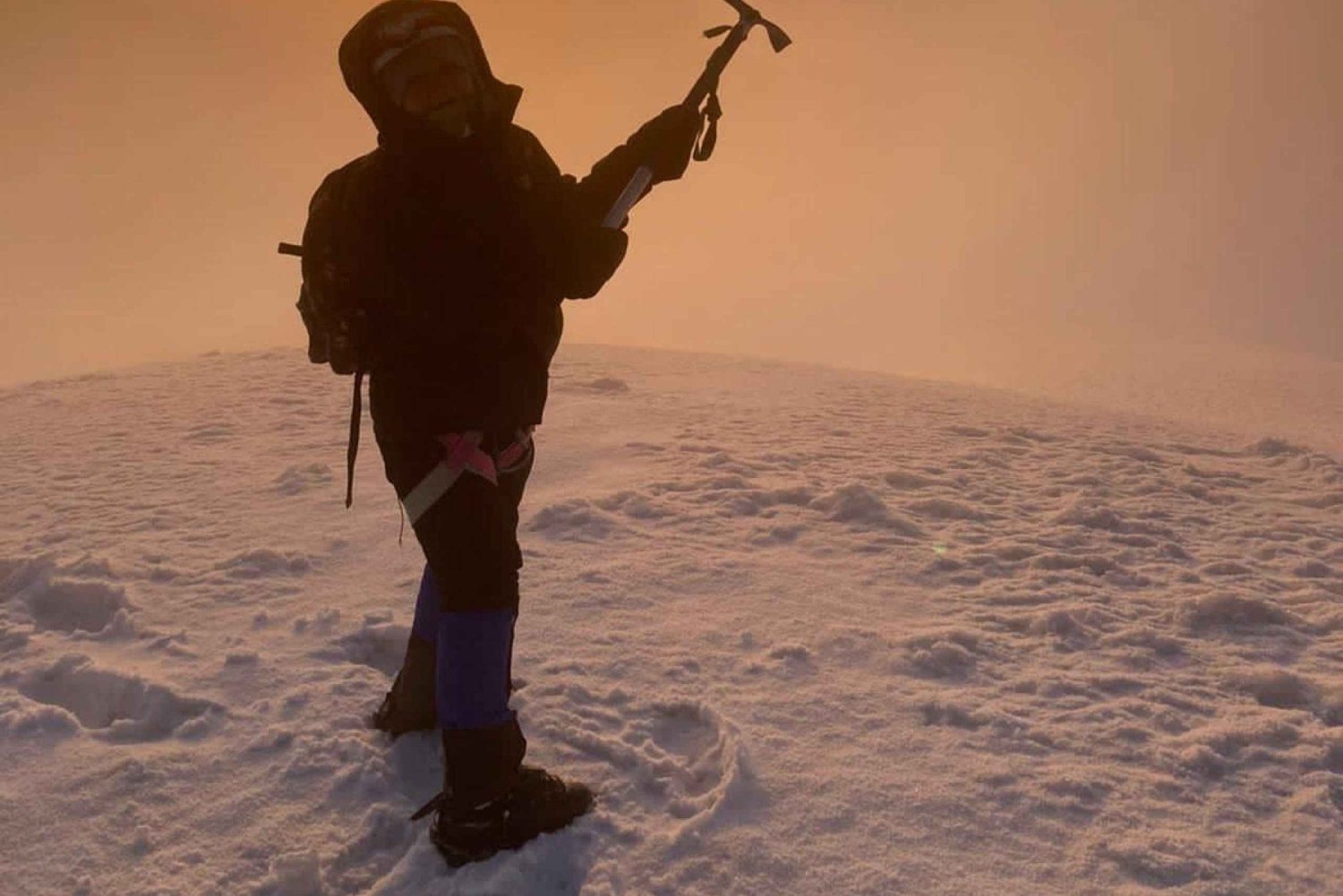 Guide professionnel bilingue, transport, hébergement, repas, entrées, pantalons polaires, bottes d'escalade en plastique, guêtres, veste polaire, crampons, gants extérieurs, pantalons, veste imperméable, piolet, harnais d'escalade, sac de couchage.Important Information