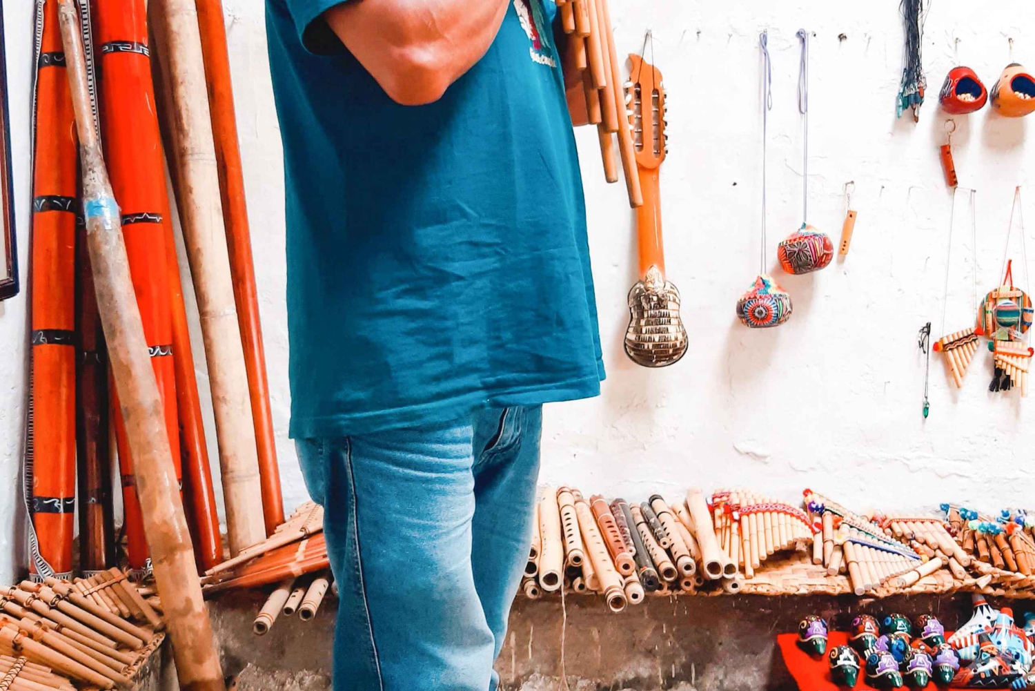 'Intraprendi un affascinante viaggio culturale a Otavalo, una città ricca di tradizioni e di un patrimonio vibrante. **Partenza e viaggio panoramico:** Inizia la giornata con un giro panoramico in auto dal tuo hotel, passando per Guayllabamba e fermandoti al punto panoramico di Otón per uno sguardo mozzafiato sui dintorni. **Delizie di Guachalá:** Arriva a Guachalá per una deliziosa esperienza di degustazione. Assapora i sapori dei tradizionali bizcochos, queso de hoja e manjar de leche, assaporando la ricchezza culinaria dell'Ecuador. **Museo Solare di Quitsato Esplora il Museo Solare di Quitsato, una tappa intrigante dove scoprirai i segreti della Mitad del Mundo, migliorando la tua comprensione della posizione geografica unica dell'Ecuador. **Sosta panoramica di Miralago:** Ammira il pittoresco Lago San Pablo e il maestoso Volcán Imbabura dal punto panoramico di Miralago, catturando l'essenza degli straordinari paesaggi naturali dell'Ecuador. **Escursione al mercato di Otavalo:** Arriva a Otavalo, nota per la sua iconica Plaza de los Ponchos. Immergiti in un'atmosfera vivace mentre esplori il vivace mercato indigeno, che presenta una serie di prodotti artigianali e tessili tradizionali. Metti alla prova le tue abilità di contrattazione e porta a casa dei souvenir autentici. **Delizia culinaria Assapora un pranzo delizioso, che ti offrirà un assaggio della cucina locale e un momento di riposo e riflessione sulle esplorazioni culturali della giornata. **Workshop di musica andina **Ñanda Mañachi Immergiti nelle melodie struggenti della musica andina al workshop Ñanda Mañachi. Assisti a performance dal vivo e scopri il ricco patrimonio musicale della regione. **Passeggiata alle cascate di Peguche:** Intraprendi una piacevole passeggiata verso l'incantevole Cascata Peguche. Senti la nebbia sul tuo viso e connettiti con la bellezza naturale che ti circonda, creando un'esperienza serena e pittoresca. **Ritorno a Quito Al termine della giornata, rifletti sui tesori culturali scoperti a Otavalo. Torna al tuo hotel a Quito, conservando il ricordo di una giornata ricca di tradizioni, musica e meraviglie naturali. Questa fuga culturale a Otavalo promette una miscela armoniosa di delizie culinarie, mercati vibranti, melodie e paesaggi mozzafiato, offrendo un'esperienza coinvolgente nel cuore del ricco patrimonio dell'Ecuador.'Includes