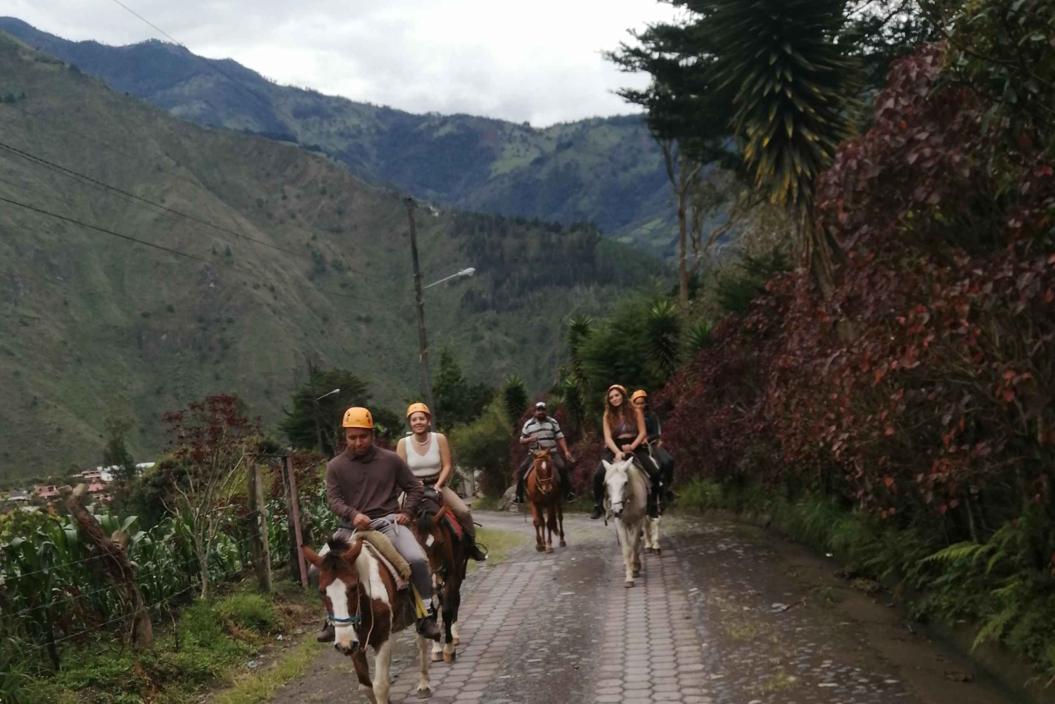 Ga waar auto's niet kunnen komen tijdens een paardrij-ervaring in Baños. In plaats van op de gebaande paden te blijven, ga je off-road het platteland in en zie je delen van het gebied die de meeste bezoekers missen. Bovendien zorgt een kleine groep van slechts 10 andere reizigers ervoor dat je persoonlijke aandacht krijgt. Begin je tocht bij het trefpunt en loop dan naar het beginpunt van de tocht. Ga kijken naar de vulkaan Tungurahua via een ecologisch pad omhoog naar een sector die Nahuazo heet en waar je de verschillende vegetaties die typisch zijn voor dit gebied kunt observeren. Bij het bereiken van Nahuazo zie je een bron van sprankelend mineraalwater uit de grond stromen, ruïnes van vroegere uitbarstingen van de Tungurahua vulkaan, zwavel en vulkanisch gesteente. De tocht duurt een uur heen en een uur terug.Includes