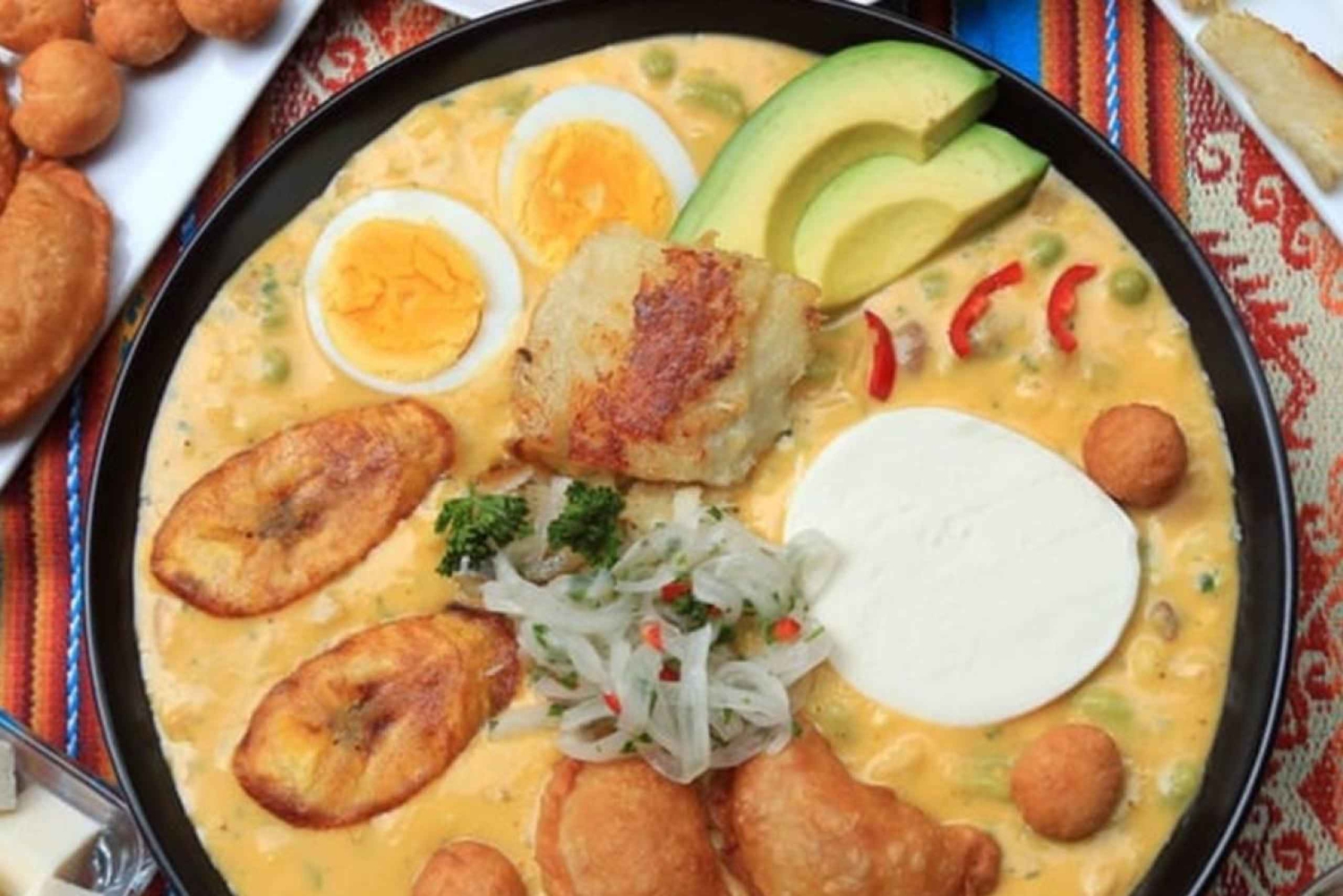 To nie jest lekcja gotowania, nie jest wycieczka piesza i nie jest to typowy posiłek. To uczta dla Twoich zmysłów i ciekawości. Prowadzony przez jednego z naszych szefów kuchni, usiądziesz wygodnie i wyruszysz na trzygodzinną degustację Cuenca, próbując około 32 najbardziej kultowych potraw Ekwadoru w połączeniu ze słynnymi winami i tradycyjnymi napojami, takimi jak canelazo, chicha, a nawet odrobiną lokalnego piwa rzemieślniczego. Zanurz się we wszystkim, od delikatnego hornado i ręcznie składanych empanadas po własne zwroty Cuenca na góralskie komfortowe jedzenie i wschodzącą kuchnię fusion, wszystkie wzbogacone regionalnymi odmianami i tropikalnymi nutami. Spróbuj złotych llapingachos, skosztuj ostrych serów rzemieślniczych z pobliskich wyżyn i wypij canelazo, rozgrzewający napój z cynamonem i naranjillą. Unikalna mieszanka wysokości, tradycji i innowacji Cuenca dodaje głębi każdemu kęsowi. Dołącz do nas w tej niezapomnianej podróży do tętniącej życiem sceny kulinarnej i kulturalnej duszy Cuenca! Idealny dla podróżników, którzy chcą głębokiego doświadczenia kulturowego bez konieczności gotowania lub chodzenia. Niezależnie od tego, czy jesteś smakoszem, miłośnikiem historii, czy po prostu jesteś głodny - to Cuenca na talerzu. Dlaczego podróżni wybierają to doświadczenie: Spróbujesz ponad 32 autentycznych ekwadorskich smaków za jednym razem. Prowadzony przez ukochanych lokalnych szefów kuchni znanych z opowiadania historii Relaksująca, pełna alkoholu i śmiechu alternatywa dla restauracji Gorąco polecane przez pary, przyjaciół i rodziny Jedna z najlepiej ocenianych restauracji w Cuenca!Includes