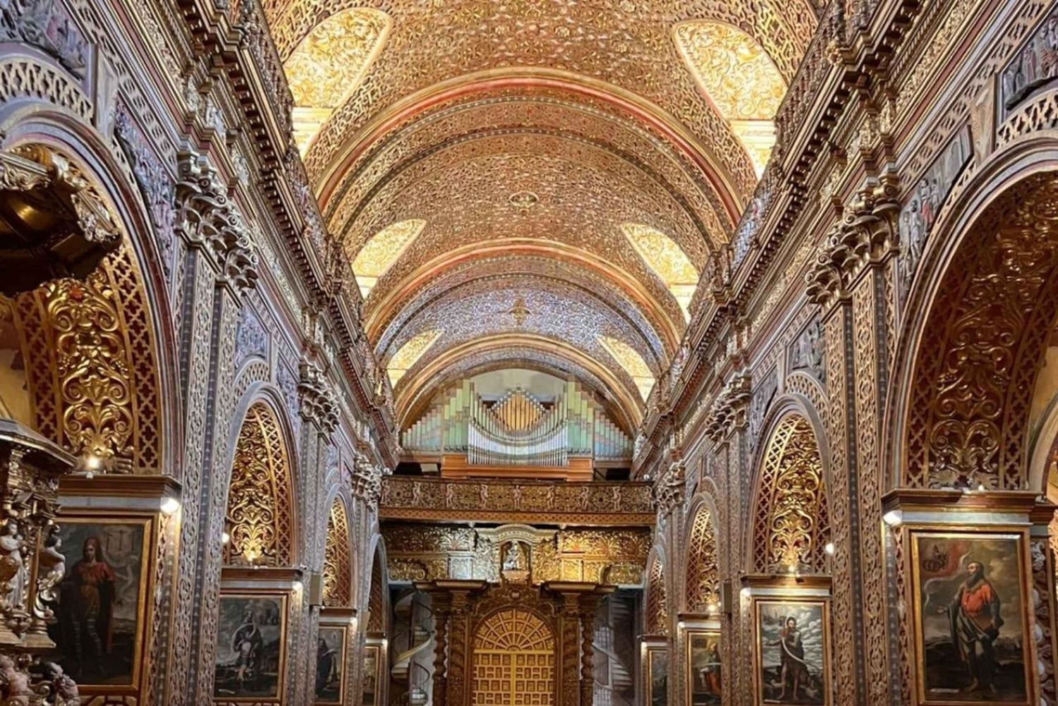 Utforska en nygotisk katolsk kyrka i Quito, byggd 1884, vars torn erbjuder en fantastisk utsikt över staden, och här finns National Pantheon of Heads of State, katakomber, kapell och Oblate-klostret. Njut av det historiska torget i hjärtat av Quito. Njut av ett jesuitkatolskt tempel i Latinamerika med en fasad av vulkanisk sten och en interiör i bladguld. Ta dig upp till Panecillo Hill för att se 'The Panecillo's Virgin', en 41 meter hög skulptur som ger en hisnande panoramautsikt över staden. Ta en 15-minuters tur med linbanan för att njuta av panoramautsikten över Quito, Upptäck museet Museo Inti Ñan: Utforska Ecuadors ursprungsbefolknings historia och himmelska kunskap i ett interaktivt museum.Includes
