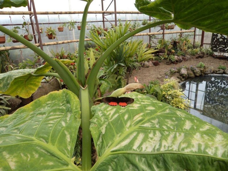 The facilities include several greenhouses, an auditorium, an exhibition hall, and open-air spaces showing the flora of the different ecosystems of the country.